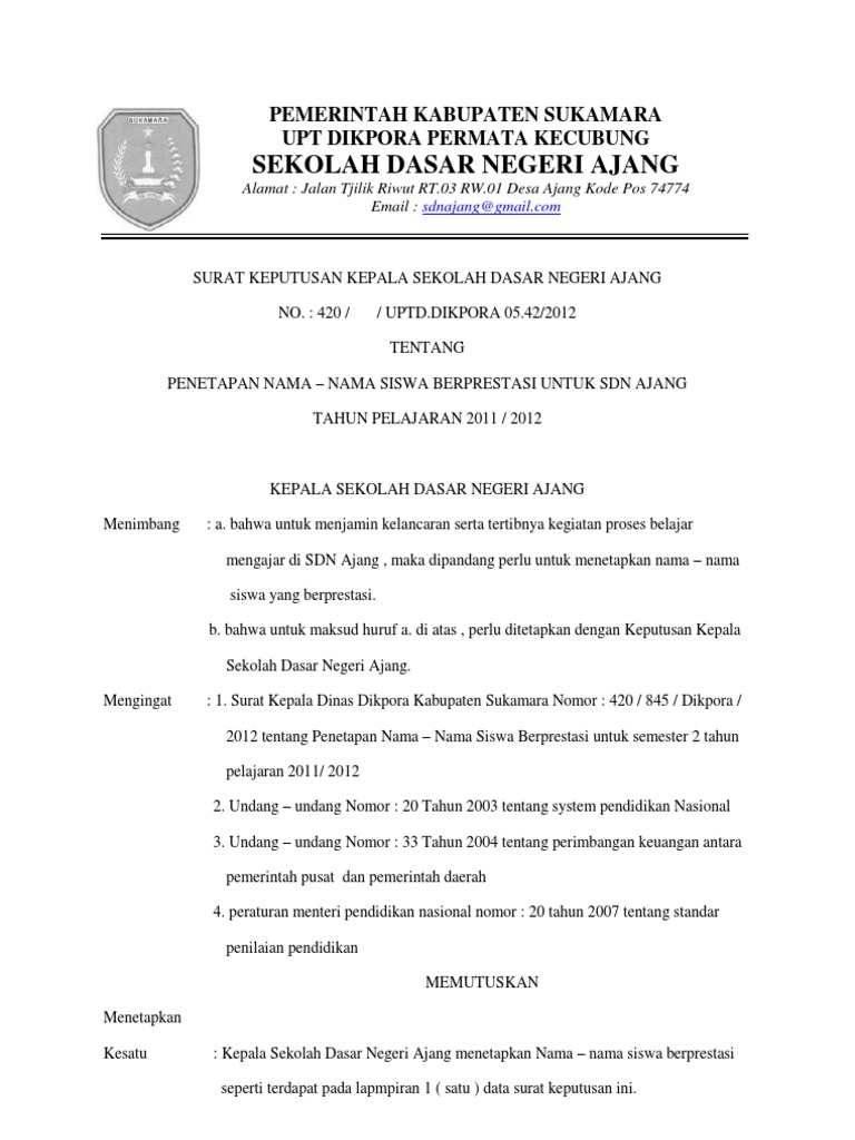 Contoh surat keputusan pengangkatan karyawan tetap. Kumpulan contoh surat keputusan ( sk ) kepala sekolah lengkap 03 feb, 2016 4 komentar surat keputusan atau yang biasa lebih dikenal dengan sk merupakan sebuah surat pernyataan yang dikeluarkan oleh lembaga tertentu, formal maupun non formal yang berisi suatu kebijakan atau keputusan tertentu yang berhubungan dengan lembaga tersebut. Sebagai bahan referensi kami sajikan contoh surat keterangan siswa / peserta didik berprestasi terbaru, surat tersebut di buat dengan microsoft word atau berformat doc sehingga dapat bapak ibu edit dengan begitu mudah untuk disesuaikan dengan sekolah/mardasah bapak dan ibu dewan guru bersatmikal. Surat keterangan peringkat dari sekolah. Tugas makalah olahraga bola voli